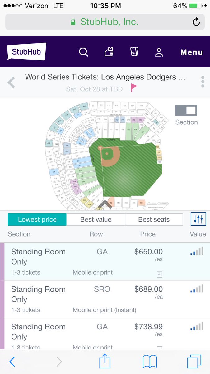 Got the green light from the boss to get tix. Headed to Game 2 and *possible* Game 6 with my son. I have a feeling it's going 6 or 7. Go DODGERS!
