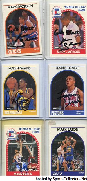 #6 Vinny Del Negro $5 #20 Rolando Blackman $15 #23 Roy Tarpley $30 #24 Harold Pressley $5 #27 Bob Hansen $10 #38 Tim Perry $20 #40 Danny Manning $20 #41 Kevin Edwards $15 #42 Paul Mokeski $15 #43 Dale Ellis AS $15 #44 Walter Berry $50 #59 Billy Thompson $5 #64 Armon Gilliam $40 #66 Jack Sikma $5 #81 Bill Wennington $5 #90 Chris Mullin $30 TTM ghost signed #91 Tom Garrick $30 #100 Terry Cummings $20 #103 Kevin Duckworth $40 #126 Del Harris $10 #128 Reggie Williams $10 #136 Fred Roberts $5 #147 Jim Petersen $5 #153 Randy Breuer $5 #161 Jerry Reynolds $10 #171 John MacLeod $10 #172 Ron Rothstein $10 #194 Ledell Eackles $20 #207 Rory Sparrow $5 #230 Chris Mullin AS $30 TTM ghost signed #238 Randy Wittman $5 #241 Darrell Griffith $5 #256 Terry Cummings AS $20 #267 Jerry Sloan $15 #269 Bernie Bickerstaff $10 #274 Gary Grant $15 #281 LaSalle Thompson $15 #291 Rick Adelman $10 #292 Dick Versace $15 #293 Alton Lister $15 #315 Buck Williams $5 signed on back |