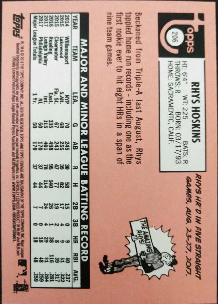 3. Rhys Hoskins Rookie Action Variation: $35
