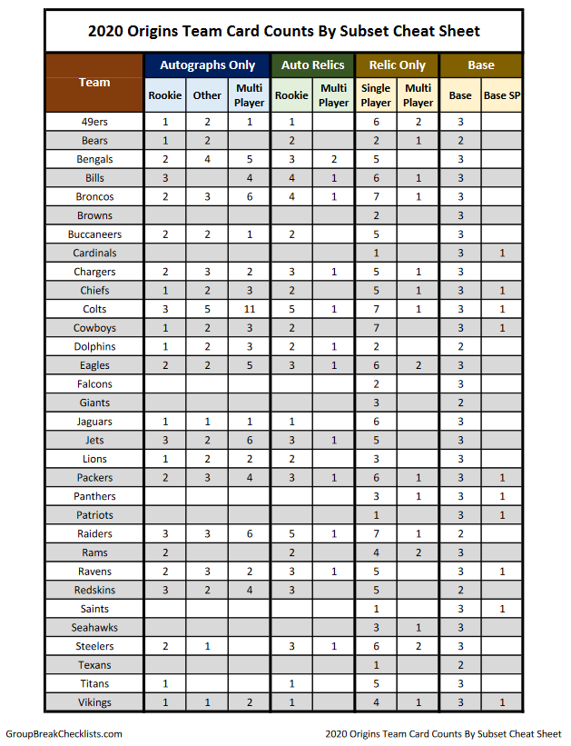 ![]() 4 cases. Each team is from 4 cases. Team shipping, supplies, and paypal fees are free. You pay your bid only (after I confirm winners and post payment info in thread). 10:00pm EDT deadline. You must bid in at least $5 increments (which I know may be impossible to follow in last minutes). YOU MUST BE ABLE TO PAY TONIGHT SO WE CAN BREAK TONIGHT! All teams start at $0. For bids to count, please use whole team and/or city name. Atlanta counts. Falcons counts. "Them Birds" does not count. Please do not EDIT your bids. You must make a new post. Arizona Cardinals Atlanta Falcons Baltimore Ravens Buffalo Bills Carolina Panthers Chicago Bears Cincinnati Bengals Cleveland Browns Dallas Cowboys Denver Broncos Detroit Lions Green Bay Packers Houston Texans Indianapolis Colts Jacksonville Jaguars Kansas City Chiefs Las Vegas Raiders Los Angeles Chargers Los Angeles Rams Miami Dolphins Minnesota Vikings New England Patriots New Orleans Saints New York Giants New York Jets Philadelphia Eagles Pittsburgh Steelers San Francisco 49ers Seattle Seahawks Tampa Bay Buccaneers Tennessee Titans Washington Team Team lists: https://www.beckett.com/news/2020-pa...ootball-cards/ This break is scheduled for tonight.