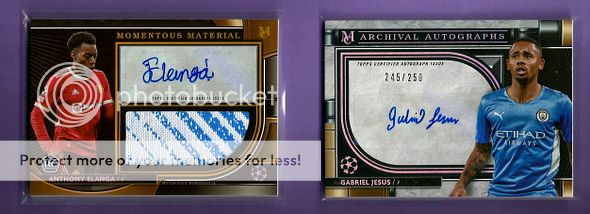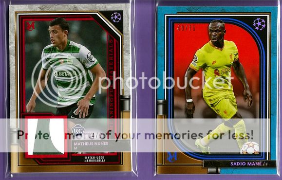 Anthony Elanga- Gold RC Jumbo Relic Auto # 22/50 Gabriel Jesus- Archival Auto # 245/250 Sadio Mane- Sapphire # 40/75 Matheus Nunes- RC 2 Color Relic # 04/25 Base: Havertz, Pique, Kroos & van Dijk (Not Pictured) ![]()