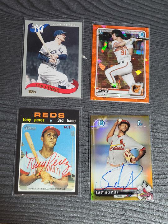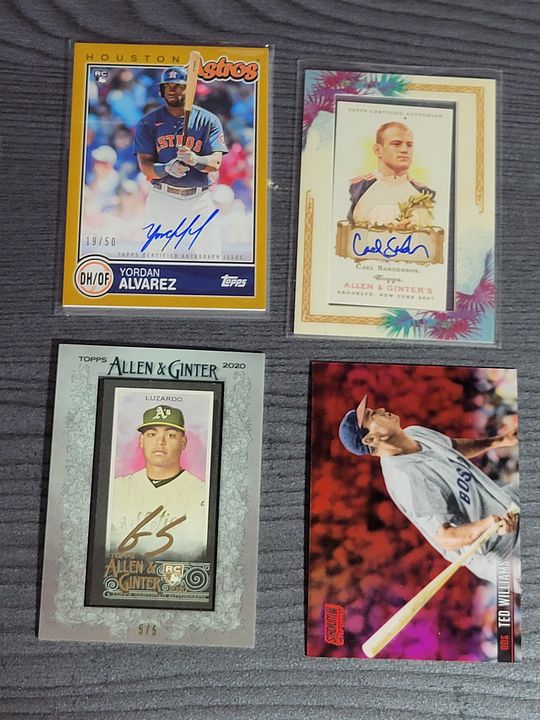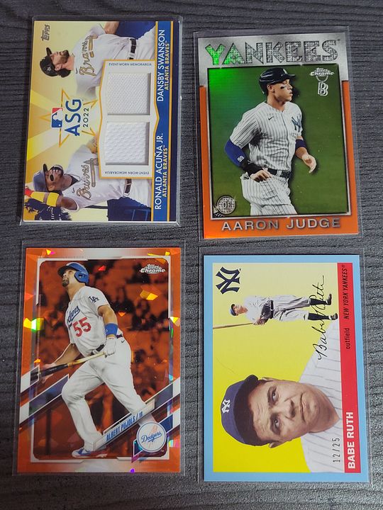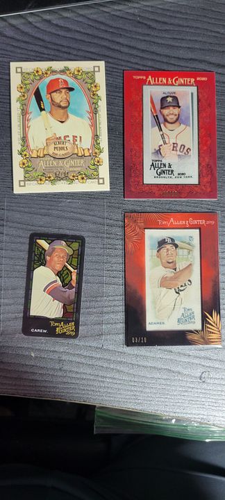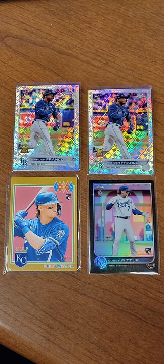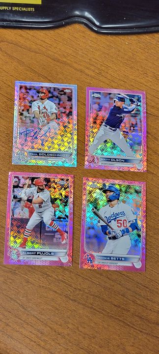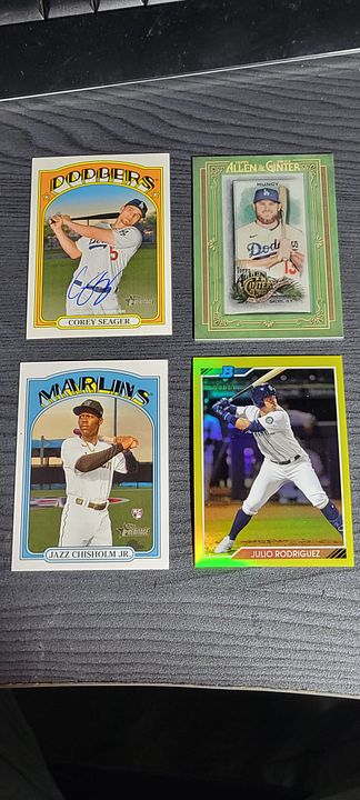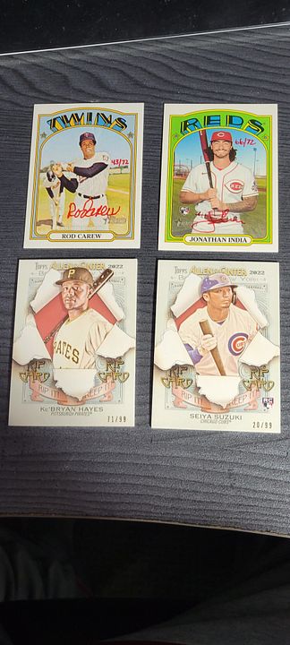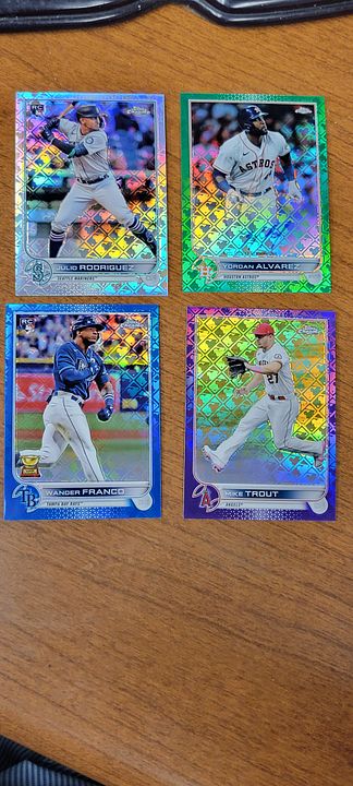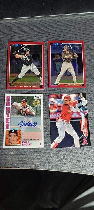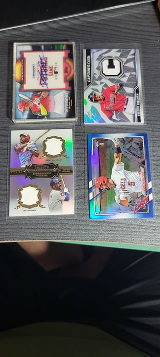 under $25 include $4 shipping *** more items just added *** ![]() 2020 bowman chrome green refractor bobby witt 8/99....................$30$OLD 2021 bowman chrome draft sapphire bobby witt...................$10 2021 bowman chrome purple refractor bobby witt 236/299...........$20 2022 silver pack bobby witt black 194/199.............$50 ![]() 2022 ben baller chrome witt SP #221 ...................$60 2022 brooklyn collection gold bobby witt #ed 46/50......$45 2022 logofractor wander franco rookie.................$75 each ![]() 2022 brooklyn collection kyle tucker auto 8/30........$45 2022 brooklyn collection roancy contreras auto 16/75....$15 $OLD 2022 brooklyn collection salvador perez auto 19/50..........$35 2022 brooklyn collection roger clemens auto 50/99..........$45 $OLD ![]() 2022 brooklyn collection aaron judge auto......$250 $OLD 2022 brooklyn collection jeremy pena 58/75.......$30 2022 topps mini carlos carrea platinum 1/1.........$90 2022 topps mini oneil cruz photo variation......$20 ![]() 2022 heritage hi # real one auto carlton fisk ........$50 $OLD 2022 heritage hi # real one auto jim palmer.......$40 $OLD 2021 heritage real one auto burt blyleven.....$20 $OLD 2022 heritage hi # real one auto shane beiber ......$18 $OLD ![]() 2021 heritage real one auto red rod carew 43/72........$75 $OLD 2021 heritage hi # real one auto red jonathan india 66/72........$175 2022 allen & ginter rip card ke'bryan hayes 71/99.......$40 $OLD 2022 allen & ginter rip card seiya suzuki 20/99.......$75 $OLD ![]() 2021 heritage hi # real one auto corey seager ......$25 2022 allen & ginter cloth max muncy 5/10.....$10 $OLD 2021 heritage hi # jazz chisolm jr missing stars.......$30 2020 bowman heritage yellow refractor julio rodriguez 50/75......$60 ![]() 2020 bowman heritage red refractor andrew vaugn 2/5.......$50 2020 bowman heritage red refractor cj abrahms 2/5.......$60 2019 silver pack auto jon smoltz 7/50.........$30 $OLD 2020 topps black shohei ohtani 33/69.........$150 $OLD ![]() ![]() 2022 allen & ginter boxloader rip kirby puckett uni # #ed 34/88..............$175 ![]() jaun soto mini stained glass 2022 ginter.......$85 devers rip card mini # 354.........$15 ![]() 2019 bowman heritage julio auto refractor #ed 66/99.........$450 2022 game within the game julio foil #ed 84/99........$140 2022 update topps black gold julio blue..........$75 $OLD 2022 update SSSP bobby witt jr..........$475$OLD ![]() 2020 bowman chrome sapphire hudson haskin orange ref #ed 16/25........$120 2020 heritage tony perez auto red 61/71.....$75 2017 bowman chrome sandy alcantara gold auto 29/50..........$340 ![]() 2022 update dual jersey acuna swnson #ed 14/25.........$45 2021 chrome baller judge orange refractor #ed 20/25.......$62 $OLD 2021 chrome update sapphire orange refractor pujols #ed 5/25........$45 2020 archives blue ruth #ed 12/25.........$15$OLD ![]() 2020 brooklyn collection alvarez gold auto........#125 $OLD 2007 allen & ginter cael sanderson auto.......$600 2020 allen & ginter X auto gold luzardo #ed 5/5........$30 $OLD 2021 stadium chrome ted williams red refactor #ed 2/5.........$100 ![]() 2022 logofractor ssp julio......$800$OLD 2022 logofractor alvarez green auto #ed 72/99.....$125 2022 logofractor wander franco blue #ed 69/150....$300$OLD 2022 logofracot trout purple #ed 64/250...... $30 $OLD ![]() 2022 logofractor paul goldschmidt auto......$125 2022 logofractor pink albert pujols #ed 128/199......$60 2022 logofractor pink mookie betts #ed 191/199.....$20 2022 logofractor pink matt olson #ed 154/199.....$8 ![]() 2019 transcandent mike trout /83 63 topps ........$OLD$35 65 topps .......$35both $OLD each 83 topps.........$35$OLD ![]() 2019 transcandent mike trout /83 record breaker......$25$OLD 2022 pristine yadier molina auto relic........$125 $OLD 2018 topps mile mikolas 83 topps rc auto....$13 2020 ltopps logan allen gold 85 topps rc auto .....$10 ![]() 2016 bowman chrome tyler oneil auto.............$30 2021 dansby swanson heritage chrome black refractor /72......$15 2018 topps aaron judge gold ...............$30 $OLD 2019 topps vintage /99 buehler............$8 $OLD ![]() 2016 topps futures game auto /25 schwarber.......$30$OLD 2021 topps chrome captains cloth freddie freeman.....$8 $OLD 2013 topps tribute transitions dual relic dawson.......$12 $OLD 2021 baller chrome pujols blue ref /75..........$18 ![]() 2021 stadium chrome lone star auto ripken /25.......$75 $OLD 2016 bowman chrome luis gonzalez rc flashback auto ....$8 2019 molina ozuna independance day /76........$6 2019-20 montgomery club set 1 rc auto kyle tucker.......$30$OLD ![]() 2020 a&g rip card ( unripped ) pujols /99...........$125 $OLD 2020 allen & ginter cloth altuve /10.............$12 $OLD 2019 allen & ginter cloth ademes /10.........$15 $OLD 2019 allen & ginter stained glass carew.......$18 $OLD ![]() 2018 topps chrome willy ademes rc auto...........$25 2013 heritage kurt suzuki venezuala....$4 $OLD 2019 allen & ginter archer stainwed glass.......$6 $OLD 2022 finest flashback auto bobby witt /20..........$650$OLD ![]() 2004 topps chrome red xfractor $9 each or $30 for all 4$OLD ![]() ![]() 2021 topps update sketck alec bohm 1/1............$65 ![]() 2021 diamond kings alejandro kirk laundry tag relic #ed 6/10......$30 ![]() 2016 topps chrome schwarber rookie auto.........$40$OLD ![]() 2021 baller chrome blue refractor 86 ohtani #ed 47/75.....$60 ![]() 2018 topps 3d insert ohtani m-21...................$50 $OLD ![]() 2020 topps 3d ohtani........$10 ![]() 2018 update willson contreras auto /5...............$45$OLD ![]() 2019 topps sp soto sunglasses#213................$65 ![]() 2016 draft chrome purple riley 57/250..............$25 Last edited by metsy617; 08-02-2023 at 06:57 AM. |