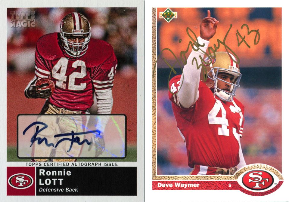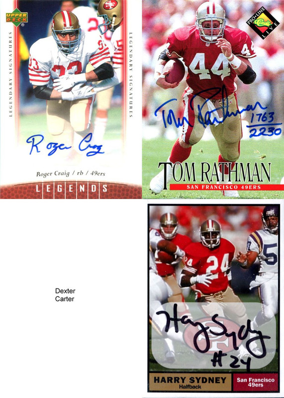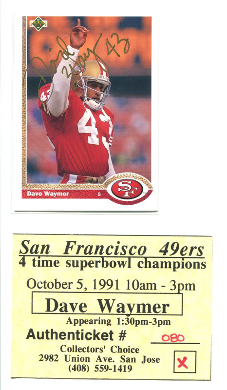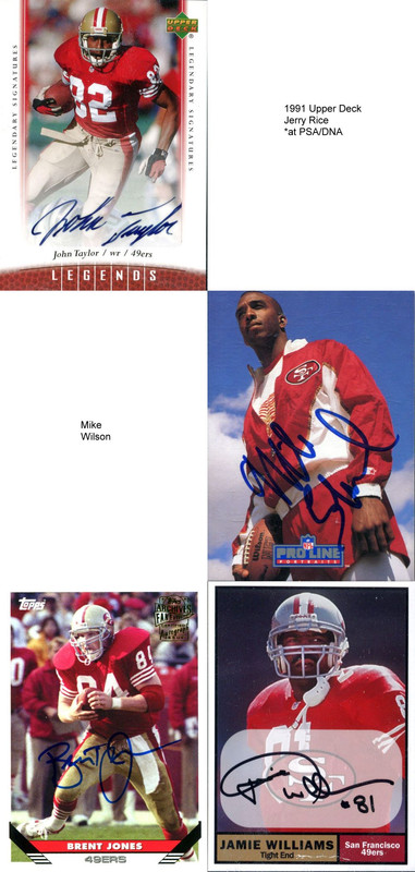 1. Certified autograph of the player in a 49ers uniform 2. Pro Line Portraits certified autograph (sig on the back) of the player in a Niners uni 3. Certified autograph of the player 4. PSA/DNA or comparable service authenticating player in a 49ers uniform 5. IP/TTM of the player in a 49ers uniform I have a number of them already I need to scan in. This one came today. It's a dear one because he passed away young. PSA's QuickCheck gave it the thumbs up and I'll be sending it off to be encapsulated this week.