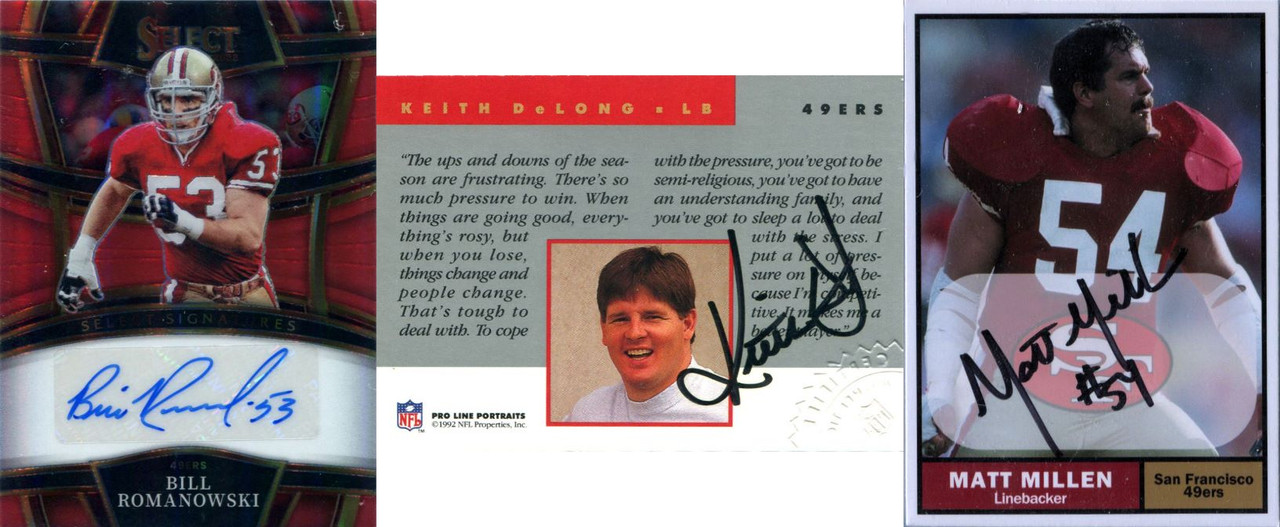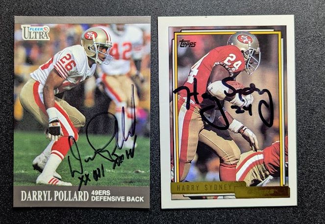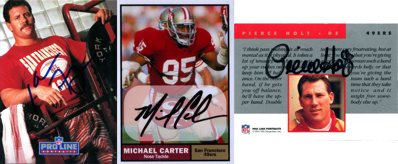 Anyways, here's some updates to the project. Here's all the defensive players I've managed to snag, with Romanowski upgrading from a TTM. Fagan requires an upgrade. I didn't notice the lack of Pro Line stamp when I picked it up. Having it signed on the front is usually a dead giveaway. On the plus side it's likely authentic. Probably someone else's TTM/IP. Carter has no certified auto so my 1961 Topps custom is the final form. Millen I do plan on upgrading from TTM to a Pro Line one with Washington unless I can find a neat PSA/DNA one in a Niners uniform. Given Pro Line is signed on the back, I'm willing to break my rules for it. Darryl Pollard and Don Griffen have no certified autos as far as I know. I'll need to do TTM or PSA/DNA. Waymer I posted before. That'll be going to PSA early next week. ![]() ![]() ![]()