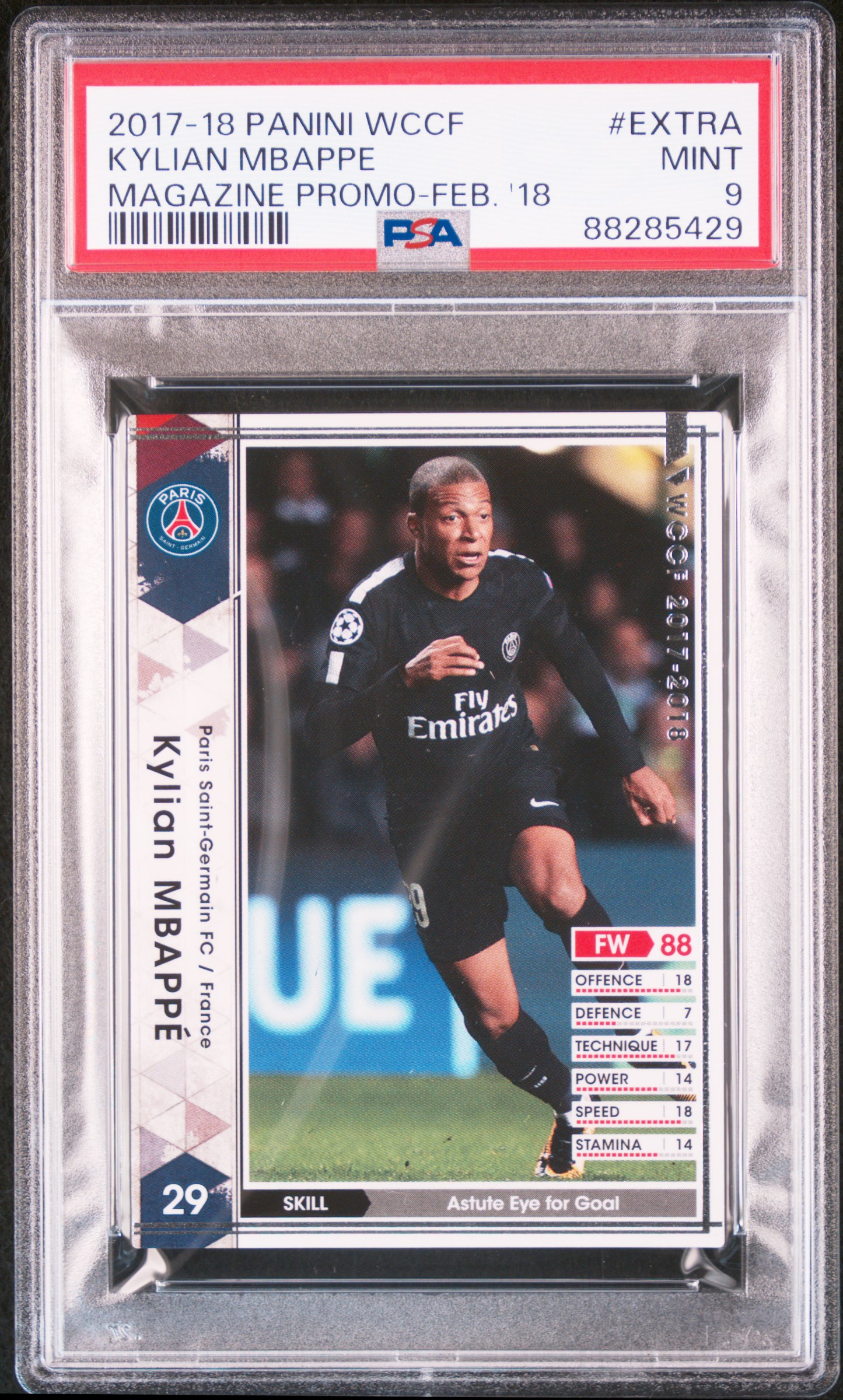 Another choice is Mbappe's Japan WCCF card which was released in a Soccer Magazine in February 2018. Although the magazine was dated February 2018 and PSA notes this on the label, the magazine was actually out on newsstands a full month earlier (as is normal for magazines) in January 2018.