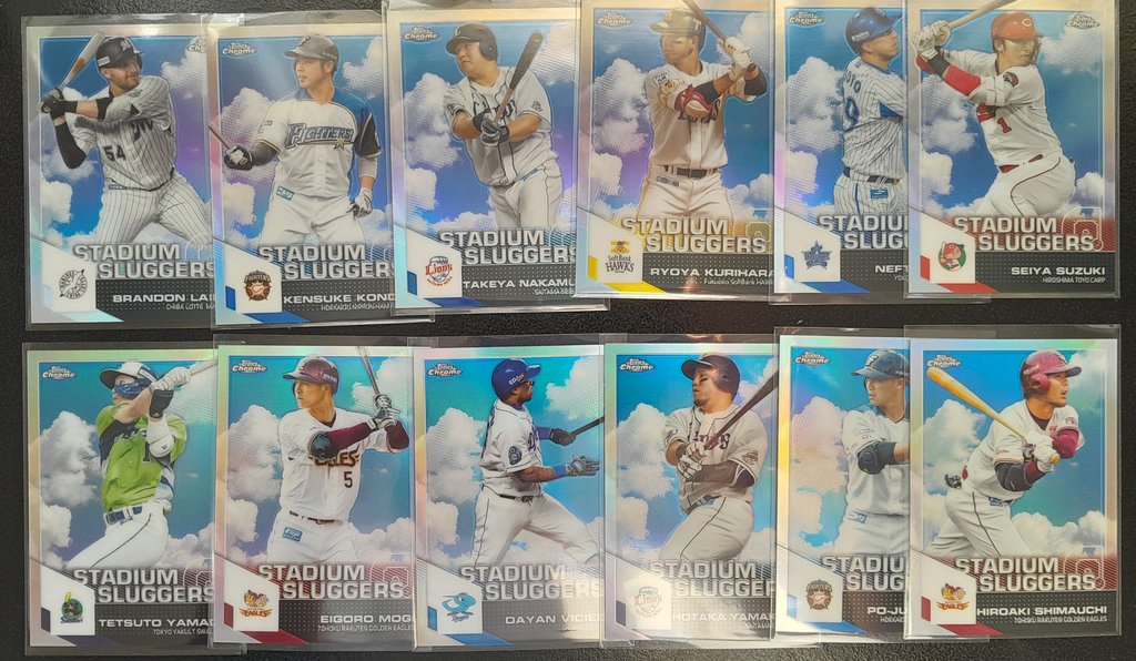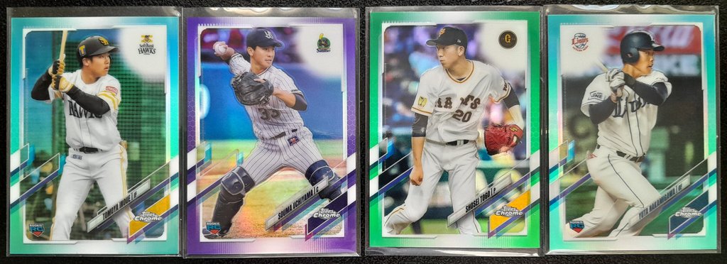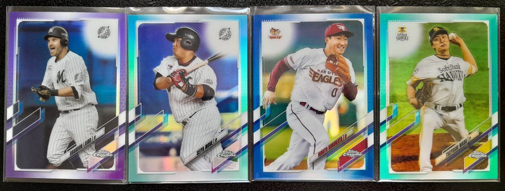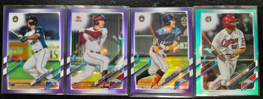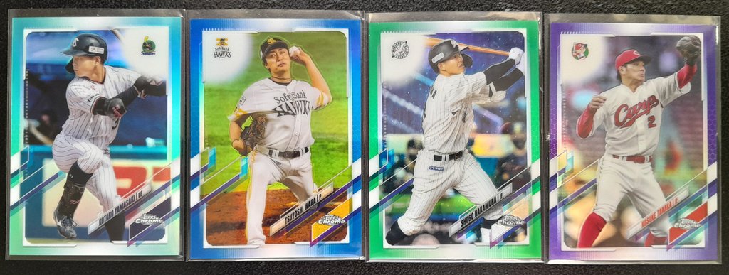 2021 Topps Chrome NPB Unpictured: 300 almost entirely unpicked base (only two cards taken out were Yamamoto, didn't hit any Roki or Murakami; there are two Shota Imanaga) -31 Base Ref -24 Color Ref -31 Inserts ![]() ![]() ![]() ![]() ![]() ![]() ![]() ![]() ![]() ![]() ![]() ![]() ![]() ![]()