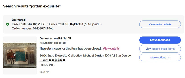 Sent:2025-07-27 12:18:10.0 Subject:Appeal the outcome of a case as a buyer Enter your question / concern I bought a Michael Jordan exquisite jersey card with ebay auction number 9410808106244023006439. The seller has send me the wrong item and i started a return request. He also didn t use the full and correct adress, which meant i had to enquire myself within COMC to get them to find my package. Because of that, the 3 day return window expired and the seller denied my request. This really feels like a deliberate act to send a wrong item and fail to use the complete adress so the package would get lost and i would miss my return request window. It is a $7200 Michael Jordan Exquisite card i bought and instead i received a $50 Wilt Chamberlain Select card. I have a picture of proof from COMC with accompanying message from *** from COMC (employee who has no benefit of showing a wrong card and also has no previous information of what should be in the package, so completely unbiased). The picture shows the wrong card that was in the package and also the incomplete adress on the package. The seller didn t include my COMC username which meant they had no way of knowing to who this package and contents belonged. I would like to get a solution from the seller as to how to fix this, either a return acceptance of this wrongfully send card and refund, or receiving the card i bought in the first place. I kindly ask for your assistance.. Best regards, Daniel ---- Van: customerhelp@ebay.com <customerhelp@ebay.com> Verzonden: woensdag 30 juli 2025 11:03 Aan: hotmail.com <hotmail.com> Onderwerp: Re: Appeal the outcome of a case as a buyer SR# 1-496447752605 Hello Daniel, *** here from the high value claims team at eBay. Thank you for your reply. I’m disappointed to see this transaction did not go to plan. Situations like this are rare and we can see your seller has not accepted your return request as it has fallen outside of the return window. At this point it is best to communicate with your seller to see if this can be resolved as we cannot take any further action due to the return timeframes. We do expect your seller to communicate with you about this. I have left a link below for more information on return windows for trading cards. We are hopeful your seller will get this resolved for you. https://www..ebay.com/help/policies/...docId=HELP1238 Warm Regards, removed name eBay High Value Claims ---- Van: Daniel Daniel <hotmail.com> Verzonden: woensdag 30 juli 2025 16:02 Aan: customerhelp@ebay.com <customerhelp@ebay.com> Onderwerp: Re: Appeal the outcome of a case as a buyer SR# 1-496447752605 Hello ***, Thanks so much for your extensive reply! Honestly, i was expecting there is a little bit more that eBay can do to help assist me in getting this resolved. I have messaged the seller within a few hours after he declined the return request, which was sunday afternoon. It has almost been 3 days since, and i haven't gotten a single reply, not even a message to say he received it and will look into it. I'm being completely ignored. I have also followed up with my contact over at COMC, and she has done an extensive investigation and no Michael Jordan Exquisite card has arrived or been added/misplaced to another account. The Wilt Chamberlain card i received has been confirmed by COMC was the card that was shipped, and not the $7200 Jordan Exquisite card i bought. I can understand that there is a time frame of 3 days within you have to request a return, but next to shipping a wrong item, the seller also failed to use the correct adress. I have added a picture (provided by COMC) of the package and its contents. It clearly shows this was the adress the seller used: COMC.com Mailboxes C/O 6727 185th Ave NE Redmond, WA 98052-5037 United States But this is the adress that is listed with eBay and should have been used by the seller: COMC.com Mailboxes C/O Flight23NL 6727 185th Ave NE Redmond, WA 98052-5037 United States The bold part is the username that was failed to be included, which resulted in the package not being able to get processed correctly and thus missing the 3-day return timeframe. Sending a $50 value card instead of the $7200 card i bought, combined with the removal of the username on the package adressing (knowing this will result in the package being unidentifiable by COMC), feels like a deliberate act in order to scam me out of an enormous amount of money. There is no incentive for the seller to reach out to me, since he has reached his goal of getting my money and declining a return request. So i have very little hope i will get a response and solution for this. I have also included a print screen of the mail with the follow up that ***(Senior Technical Customer Support Agent at COMC) has done for me. I really hope that will all this additional information i provided and picture proof by COMC.com, there is a lot more that eBay can do to help assist me. I can't imagine that eBay would accept seller practices like this, and wants to be a facilitating platform for scams like this. With kind regards, Daniel ---- Van: customerhelp@ebay.com <customerhelp@ebay.com> Verzonden: woensdag 30 juli 2025 16:22 Aan: @hotmail.com <@hotmail.com> Onderwerp: Re: Appeal the outcome of a case as a buyer SR# 1-496447752605 Hello Daniel, This is *** from the eBay High Value Claims Team. Thank you for your email in relation to the return 5297316859 that you had open for the 2004 Extra Exquisite Collection Michael Jordan 1996 All Star Jersey BGS 9 (286685377291). I understand it is frustrating when a transaction does not go as anticipated. Thank you for explaining what happened. I understand the situation you're in. Buying online is not always straightforward and I am happy to review this with you. I can see that your seller's tracking showed delivery to your checkout address on July 18th and the return was only opened on July 26th, when this was opened it was outside the eBay Money Back Guarantee timeframes for opening 