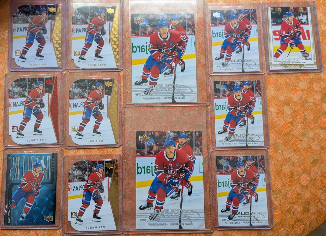 I am not looking for any other trades. I will only trade within Canada.PLMK 2025-26 Artifacts Clear #218 Maxim Tsyplakov 2024-25 Upper Deck #747 Will Smith Exclusive #041/100 2024-25 Credentials #RTR-LH Retro Ticket Access Rookies Lane Hutson 2019-20 SP Authentic #244 Cayden Primeau #366/999 2022-23 Upper Deck #451 Juraj Slafkovsky young gun 2025-26 Artifacts Clear #190 Niklas Kokko ![]() 2025-26 Upper Deck #202 Gabe Perreault young gun 2025-26 Upper Deck #202 Gabe Perreault young gun 2025-26 Upper Deck #248 Sam Rinzel young gun 2025-26 Upper Deck Tim Horton's #SW-1 Shea Weber 2025-26 Upper Deck #203 Olivier Rodrigue silver outburst 2025-26 Upper Deck Canvas #C-96 Zayne Parekh ![]() 2016-17 Exquisite Rookie Signatures Charlie Lindgren #205/225 2023-24 Premier Super Rookies Matthew Coronato #78/99 2022-23 Black Diamond Diamond Relic Rookies Jake Sanderson #08/49 2022-23 UD Clear Cut Owen Power 2016-17 Exquisite Rookie Auto Patrick Laine #21/25 2022-23 Black Diamond Diamond Rookie Team Logo Jumbos Macklin Celebrini *** SOLD ![]() 2020-21 Leaf Pearl Hockey Locker Room Pelle Lindergh #2/6 ***SOLD 2023-24 UD Ice Luke Evangelista Gold Patch #34/49 2015-16 Fleer Showcase Zachary Fucale Hot Prospect #07/25 2019-20 Premier Cayden Primeau #46/99 2022-23 Credentials First Star of the Night Rookie Jake Sanderson #20/25 2024/25 SPX Super Scripts Rookies cutter Gauthier #62/99 *** SOLD ![]() 2016-17 The Cup Patrik Laine Autographed Rookie Gear booklet #08/24 ![]() A Few Ivan Demidov Cards 2025-26 Upper Deck Young Guns 2025-26 Upper Deck Over Size Young Guns 2025-26 Upper Deck Rookie Die-Cuts 2025-26 Upper Deck Rookie Die-Cuts Red 2025-26 Upper Deck Blue Dazzlers 2025-26 Upper Deck O-Pee-Chee Glossy Gold ![]() 2025-26 Upper Deck inserts & Young Guns traders for cards on my want list (see my want list at the end of this thread) Canvas;10,11,12,14,18,27,28,35,40,41,47,52,54,59,60,63,65,66,68,75,77,84,88,92,96,99,106,107,110,112 Cup Quest:2,4,6,7,8,12,15,16,17,18,19,20 O-Pee-Chee Glossy:1,2,3,5,6,7,8,9,12,14,16,17,18,19,20,21,24,25 O-Pee-Chee Glossy Gold:1,2,3,5,8,9,10,13,17,22,23,24 Encore;5,8,10,17,21,24,26,27,30,31,32,33,38,39,40,41,43 ,44,48,49,50,51,53,59,60,64,65,66,68,70,72,77,80,82,83,84,85,91,94,95 Compositions:1,2,4,6,7,8,9,10,13,14,16,17,18,20,22 ,23,25,29,30\ Bustle:3,4,6,7,11,13,14,15,16,17,18,19,20 Goal Oriented:1,3,4,6,7,8,10,11,12,15,19,20 Tracking Systems;1,3,5,6,7,8,9,11,12,13,14,18,19,20,21,22,23,24,26,27,28,29,30 UD Portraits:2,5,6,7,8,10,11,12,13,14,15,16,17,21,23, 24,25,27,28,29,30 Sizzle Reel:2,3,4,6,9,10,11,12,14,17,18,21,22,23,24,25,26,27 ,28,29,32,33, Compadres :1,2,3,4,6,7,9,11,13,15 Blue Dazzlers:2,4,11,14,16,17,18,28,34,39 Green Dazzlers:3,16,29,31,36,40,41,44 Pink Dazzlers:4,42 Silver Outburst: 48,49,59,81,136,181,193,203,204 Rookie Die Cuts: 1,2,3,4,5,6,7,8,9,10 Rookie Die Cuts Red: 1,2,4,6 Special Inserts sparkles Compositions :,2,8,16 Goal Oriented:4,9,17 Tracking System:6,27 Sizzle Reel;12,18, 33 Bustle:7,14,16,20 Encore Blue:14,67 Population Counts “1000” :29,30 Population Counts “500”: 23 Clear Cut: 130, Deluxe:167 Oversized Young Guns:205,212,226,236,237,238 Young Guns: 201,202,204,205,206,207,208,209,210,211,212,214,215,216,217,218,219,220, 221,222,223,224,225,226,227,229,230,231,232,233,234,235,237,239, 240,241,242,243,244,245,246,247,248,249 MY NON SPORT WANT LIST 1946 Nabisco :Toy Town Carnival #1 (Canadian version) English only 1949 Nabisco Straight Arrow :#6 Brush Shelter, #9 Indian Raft , #13 Indian Oven,(Canadian version) English only 1952 Canadian Shredded Wheat Kings & Queens of England:9,23( looking for VG or better) 1954-1955 Pep Cereal cards :Set-A : A6; Set-C : C8,C9; Set-D : D14, D15 (looking for VG or better) 1955 Parkhurst Fido ; #1 (need vg-ex-m) 1960 Morse's Tea Royal Canadian Navy Ships & Aircrafts :1,4,10,30,34,50 (need VG-ex-m or better) 1964 A & B C Beatles Black and White Series 2 :96 ( looking for VG-ex-m) 1965 Dandy Gum Series F Movie cards "Printed in Holland":12,35,44,50,53,63,65(VG-EX-M) 1968 York X-Ray cards: 12(need VG - EX-M) 1971 O-Pee-Chee Partridge Family series 2(blue) ;2a,18a (need VG - ex-m or better) 2025 Goodwin Champions Goudy Wantlist : #11,#15 1965 Topps and 1968 OPC CFL Wantlist 1965 Topps CFL want list : 57,67,74,110,126 1965 Topps CFL #57 Don Sutherin 1965 Topps CFL #67 Bernie Faloney 1965 Topps CFL #74 Billy Joe Booth 1965 Topps CFL #110 Jackie Parker 1965 Topps CFL #126 Kenny Ploen 1968 O-Pee-Chee CFL 1 Roger Murphy Montreal Alouettes 16 Ron Stewart Ottawa Rough Riders 18 Bo Scott Ottawa Rough Riders 21 Gene Gaines Ottawa Rough Riders 27 Moe Racine Ottawa Rough Riders 29 Bob Taylor Toronto Argonauts 30 Mel Profit Toronto Argonauts 31 Dave Mann Toronto Argonauts 32 Marv Luster Toronto Argonauts 39 Wally Gabler Toronto Argonauts 41 Danny Nykoluk Toronto Argonauts 42 Bill Frank Toronto Argonauts 46 Angelo Mosca Hamilton Tiger-Cats 47 John Barrow Hamilton Tiger-Cats 48 Bill Danychuk Hamilton Tiger-Cats 49 Jon Hohman Hamilton Tiger-Cats 50 Bill Redell Hamilton Tiger-Cats 51 Joe Zuger Hamilton Tiger-Cats 54 Tommy Grant Hamilton Tiger-Cats 55 Garney Henley Hamilton Tiger-Cats 57 Bob Krouse Hamilton Tiger-Cats 62 Bill Whisler Winnipeg Blue Bombers 67 Mitch Zalnasky Winnipeg Blue Bombers 69 Ron Kirkland Winnipeg Blue Bombers 75 Chuck Zickefoose Calgary Stampeders 76 Frank Andruski Calgary Stampeders 78 Terry Evanshen Calgary Stampeders 86 George Reed Saskatchewan Roughriders 87 Ron Lancaster Saskatchewan Roughriders 91 Bruce Bennett Saskatchewan Roughriders 96 Alex Benecick Saskatchewan Roughriders 97 Ted Urness Saskatchewan Roughriders 99 Don Gerhardt Saskatchewan Roughriders 102 Bob Kosid Saskatchewan Roughriders 109 Garry Lefebvre Edmonton Eskimos 112 Dick Dupuis Edmonton Eskimos 117 Greenard Poles Edmonton Eskimos 122 Jim Evenson British Columbia Lions 126 Mike Martin British Columbia Lions 127 Craig Murray British Columbia Lions 130 Bill Lasseter British Columbia Lions 132 Checklist Card CL