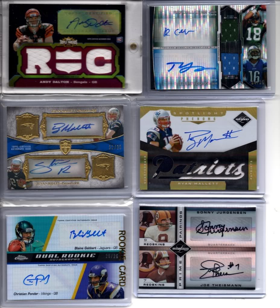 $300-$400 for the best lot you can show me interested in flacco, ryan, ap, bradford, rivers, sjax, rice, jones drew, dalton, stafford, freeman but i will look at everything! Looking to add to my pc and also some trade bait