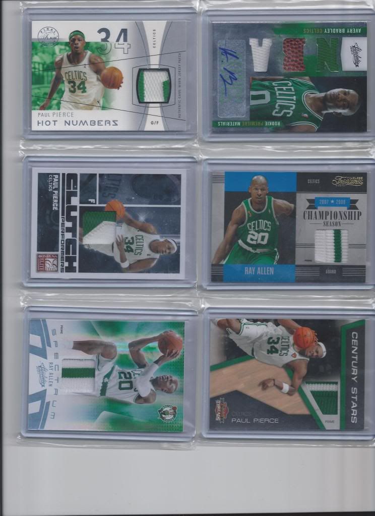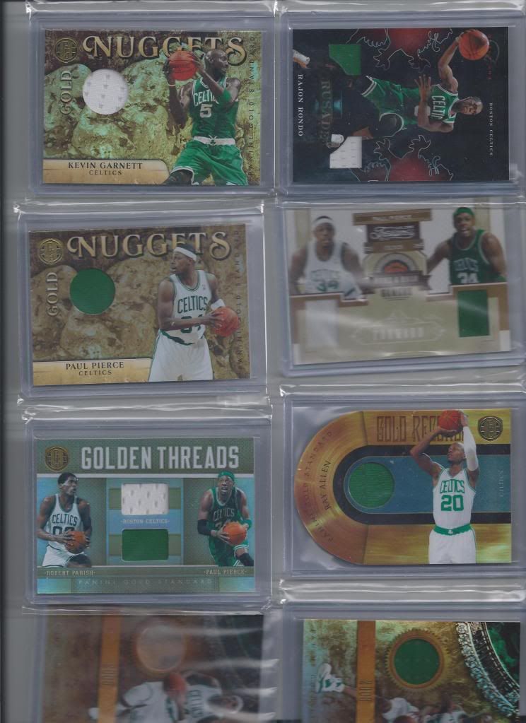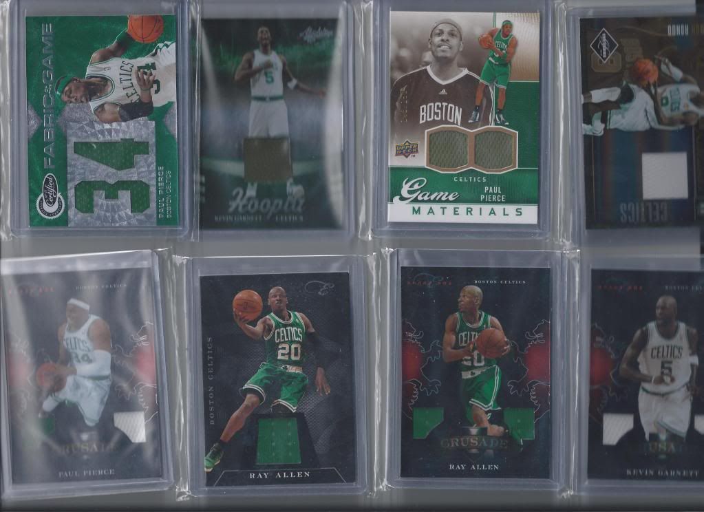 - 2010/11 Certified Jersey Paul Pierce - $4.00 - 2010/11 Absolute Memorabilia Kevin Garnett Jersey #/100 - $8.00 - 2010/11 Limited Jersey Rajon Rondo #/99 - $10.00 - 2010/11 Black Box #/99 Crusade Dual Jersey Paul Pierce - $7.00 - 2010/11 Black Box #/99 Crusade Dual Jersey Ray Allen -$7.00 x2 - 2010/11 Black Box #/99 Crusade Dual Jersey Kevin Garnett - $5.25 - 2010/11 Black Box #/99 Crusade Dual Jersey Rajon Rondo - $14.00 - 2010/11 Triple Threads #/99 Paul Pierce - $10.00 - 2010/11 Gold Standard Jersey #/299 Ray Allen -$5.00 x2 - 2010/11 Gold Standard Jersey #/199 Kevin Garnett - $5.00 - 2010/11 Gold Standard Jersey /#199 Paul Pierce - $5.00 - 2010/11 Gold Standard Dual Jersey /#299 Paul Pierce & Robert Parish - $3.00 - 2010/11 Gold Standard 14KT GOLD CARD #8/8 PAUL PIERCE $75.00 - 2010/11 Absolute Memorabilia Rookie Card Jersey/Ball/ Jersey Auto Bradley #/499 - $20.00 - 2010/11 Triple Threads Ray Allen Green/White Swatch /#25 - $20.00 - 2010/11 Panini Threads Paul Pierce Green/White Swatch #/50 - $20.00 - 2004/04 Paul Pierce Hot Numbers Green/White Swatch /#36 - $25.00 - 2008/09 Paul Pierce Green/White Swatch /#50 - $20.00 - 2010/11 Ray Allen Green/White Swatch /#25 -$25.00 - 2007/08 - Rare Patches Dual Ray Allen/Kevin Garnett Patches #2/10 - $75.00!! ![]() ![]() ![]() ![]() Thanks again guys!!!! Last edited by Crazyceltics; 09-09-2012 at 04:54 PM. Reason: Adding Pictures |