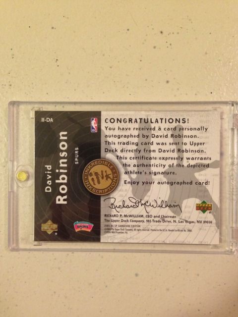 David Robinson Auto "Ink-Redible Inkscriptions" 29/50 Upper Deck SP Signature Eddition "Inkredible Inkscriptions" Very low numbered 29/50