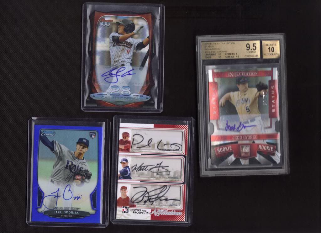 All cards are in NM-Mt to Mt condition unless otherwise described. Shipping is an additional $2.00, add $.25. Feel free to make reasonable offers or ask questions. Not wanting to trade unless you have Buxton, Shaffer Chrome Auto, or High End Inception. Thanks.
