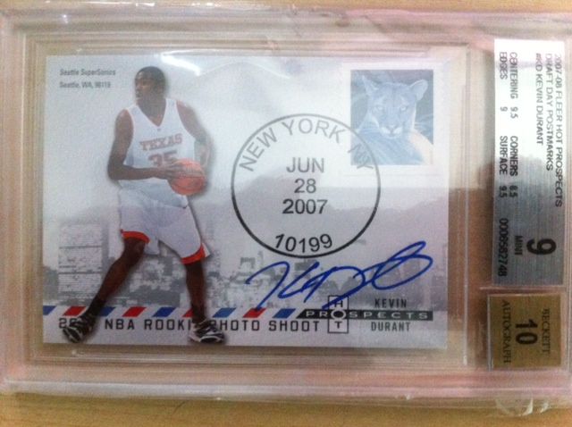 I am wanting to trade down my 2007-08 Kevin Durant Postmarks RC Auto /50 BGS 9 along with some PP. Please only make it 1 card plus PP. Offers welcome.
