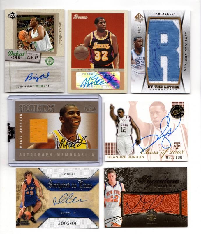 J.J. Barea 11-12 NBA Hoops Auto #35 10 GU/AU J.J. Hickson 12-13 Panini Elite Signatures Auto #20 8 GU/AU J.R. Giddens 08-09 Fleer Hot Prospects RC PATCH/Auto #131 8 GU/AU J.R. Giddens 08-09 UD Premier RC Jersey/Auto #126 (I have two of this card) 10 GU/AU each J.R. Reid 1999 Skybox Autographics Auto 16 GU/AU J.R. Smith 04-05 Skybox Autographics Future Signs RC Auto #FSA-JS2 12 GU/AU J.R. Smith 04-05 UD Black Diamond Gemography RC Auto #GEM-JR 16 GU/AU J.R. Smith 04-05 UD Trilogy Signs of Stardom RC Auto #SI-JR 18 GU/AU Jack Sikma 13-14 Panini Prizm Auto #169 14 GU/AU Jae Crowder 12-13 Panini Totally Certified RC Auto #75 (I have two of this card) 6 GU/AU each Jamaal Macloire 00-01 SPx RC Jersey/Auto #115 8 GU/AU Jamaal Magloire 00-01 SP Authentic Sign of the Times Auto #JA 6 GU/AU Jamaal Magloire 02-03 UD Glass Auto Focus Auto #JM 8 GU/AU Jamaal Magloire 05-06 Upper Deck Hardcourt Signatures Auto #HS-JM 6 GU/AU Jamaal Magloire 2000 Press Pass SE RC Auto 6 GU/AU Jamaal Wilkes 04-05 UD Diamond Pro Sigs Collection #PS-JW 25 GU/AU Jamaal Wilkes 05-06 Fleer Greats of the Game Auto #GG-JW 14 GU/AU Jamaal Wilkes 06-07 UD Chronology Auto #42 25 GU/AU Jamario Moon 09-10 Upper Deck Signature Collection Auto #188 7 GU/AU Jameer Nelson 04-05 SP Authentic RC Auto #168 (I have two of this card) 14 GU/AU each Jameer Nelson 04-05 Topps Finest Refractor RC Auto #165 #’d 019/179 18 GU/AU Jameer Nelson 04-05 UD Trilogy Auto Focus RC Auto #AF-JN 20 GU/AU James Anderson 10-11 Classics RC Auto #145 10 GU/AU James Anderson 10-11 Panini Absolute Memorabilia RC Jersey/Ball/Jersey/Auto #170 7 GU/AU James Anderson 10-11 Playoff Contenders RC Auto #119 14 GU/AU James Anderson 2010 Upper Deck World of Sports Auto #26 6 GU/AU James Johnson 09-10 Donruss Elite RC Auto #175 9 GU/AU James Johnson 09-10 Panini Crown Royale RC Auto #124 6 GU/AU James Johnson 09-10 Panini Limited RC Jersey/Auto #164 12 GU/AU James Johnson 09-10 UD Draft Edition RC Auto #41 (I have two of this card) 6 GU/AU each James Johnson 09-10 Upper Deck Signature Collection Auto #117 6 GU/AU James Jones 03-04 Bowman Signature RC Auto #107 6 GU/AU James Posey 1999 SP Top Prospects Vital Signs Auto #JP 6 GU/AU James White 06-07 Topps Finest Refractor RC Auto #76 6 GU/AU James White 06-07 Upper Deck Sweet Shot RC Auto #104 6 GU/AU Jan Vesely 12-13 Panini Prestige Prestigious Picks Auto #5 10 GU/AU Jan Vesley 13-14 Panini Prestige Bonus Shots Auto #43 6 GU/AU Jared Cunningham 12-13 Panini Gold Standard RC Auto #257 7 GU/AU Jared Cunningham 12-13 Panini Prestige Prestigious Picks RC Auto #68 6 GU/AU Jared Cunningham 2012 Leaf Basketball RC Auto #BA-JC2 6 GU/AU Jared Dudley 07-08 Bowman Chrome RC Refractor Auto #139 8 GU/AU Jared Dudley 07-08 Fleer Hot Prospects Autographics Auto #AU-JD 8 GU/AU Jared Dudley 07-08 SP Rookie Edition RC Auto #77 (I have two of this card) 8 GU/AU each Jared Dudley 07-08 SP Rookie Threads Dual Jersey/Auto #65 8 GU/AU Jared Dudley 07-08 Topps Echelon RC Auto #63 6 GU/AU Jared Dudley 07-08 Topps Stadium Club X-Fractor RC Auto #122 8 GU/AU Jared Dudley 07-08 Upper Deck Sweet Shot RC Auto #104 6 GU/AU Jared Dudley 08-09 SPx Super Scripts Auto #SS-JD 8 GU/AU Jared Dudley 09-10 SP Game-Used Significance Auto #S-JD 8 GU/AU Jared Dudley 13-14 Panini Crusade Quest Auto #36 6 GU/AU Jared Dudley/Sean Williams 07-08 Topps Co-Signers Dual RC Auto #CS-46 7 GU/AU Jared Jeffries 02-03 Topps Finest RC Auto #107 6 GU/AU Jarrett Jack 05-06 SP Game-Used Edition Significance Auto #SIG-JJ 8 GU/AU Jarrett Jack 05-06 Topps First Row Signature Swish RC Auto #SS-JJ 8 GU/AU Jarrett Jack 05-06 Upper Deck Reflections Signature Reflections RC Auto #SR-JJ 8 GU/AU Jarrett Jack 05-06 Upper Deck Rookie Debut Ink RC Auto #Di-Ji 10 GU/AU Jarrett Jack 07-08 SP Game-Used Significance Auto #SI-JJ (I have four of this card) 8 GU/AU each Jarrett Jack 07-08 SPx Super Scripts Auto #SS-JJ 9 GU/AU Jarrett Jack 09-10 Bowman 48 Auto #48A-JJ (I have two of this card) 9 GU/AU each Jarrett Jack/T.J. Ford 08-09 Topps Co-Signers Dual RC Auto #CS-FJ #’d 122/240 18 GU/AU Jarvis Hayes 03-04 Bowman Signature RC Jersey/Auto #103 6 GU/AU Jarvis Hayes 03-04 SP Signature Edition Authentic Signatures RC Auto #AS-JH 6 GU/AU Jarvis Hayes 03-04 SPx RC Jersey/Auto #157 7 GU/AU Jason Kapano 03-04 UD Ultimate Collection RC Auto #154 #’d 175/250 8 GU/AU Jason Kapono 03-04 Bowman Rookies & Stars Signs of the Future RC Auto #SFA-JK 7 GU/AU Jason Kapono 03-04 Skybox Autographics RC Auto # A-JK 9 GU/AU Jason Kapono 03-04 SP Authentic RC Auto #175 10 GU/AU Jason Kapono 03-04 SP Signature Edition Authentic Signatures RC Auto #AS-KO 8 GU/AU Jason Kapono 03-04 SPx RC Jersey/Auto #178 9 GU/AU Jason Kapono 03-04 UD Rookie Exclusives Star Rookie Auto #A26 (I have two of this card) 8 GU/AU each Jason Maxiell 04-05 Upper Deck SP Signature Edition Rookie Graphiti RC Auto #RG-JM 7 GU/AU Jason Maxiell 05-06 Hoops Hoop Scripts Auto #HS-JM (I have two of this card) 8 GU/AU each Jason Maxiell 05-06 UD Trilogy Signs of Stardom RC Auto #SS-JM 8 GU/AU Jason Richardson 02-03 Sweet Shot Signature Shots Auto #JR 12 GU/AU Jason Richardson/Jiri Welsch 02-03 Upper Deck Inspirations Dual Signatures Autos #136 18 GU/AU Jason Smith 07-08 Fleer Hot Prospects RC Patch/Auto #96 20 GU/AU Jason Smith 07-08 SP Rookie Edition Auto #105 8 GU/AU Jason Smith 07-08 SP Rookie Edition RC Auto #75 7 GU/AU Jason Smith 07-08 Topps Stadium Club X-Fractor RC Auto #120 8 GU/AU Jason Smith 07-08 UD Premier RC Jersey Quad/Auto #114 #’d 134/199 14 GU/AU Jason Smith 09-10 SP Game-Used Significance Auto #S-JS (I have two of this card) 7 GU/AU each Jason Smith 09-10 SP Game-Used Significance Auto #S-SM (I have five of this card) 7 GU/AU each Jason Smith 12-13 Panini Brilliance Auto #195 (I have two of this card) 8 GU/AU each Jason Smith 13-14 Panini Rising Tide Autographs Auto #33 7 GU/AU Jason Smith 13-14 Panini Totally Certified Totally Silver Signatures Auto #215 8 GU/AU Jason Terry 01-02 Topps High Team Topps Auto #109 10 GU/AU Jason Terr