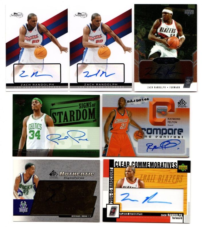 Stacey Augmon 05-06 Upper Deck Hardcourt Signatures Auto #HS-AU (I have two of this card) 6 GU/AU each Stacey Augmon 13-14 Fleer Retro Skybox Autographics Auto #96AU-SA 8 GU/AU Stacey Augmon 2008 Press Pass Authentics Select Signatures Auto #SS-SA (I have two of this card) 8 GU/AU each Stanley Robinson (UConn) 2010 SP Authentic By the Letter Manufactured Patch Auto #214 8 GU/AU Stanley Robinson 10-11 Panini Timeless Treasures RC Auto #150 7 GU/AU Stephane Lasme 07-08 Fleer Hot Prospects RC PATCH/Auto #116 10 GU/AU Stephane Lasme 2007 Topps Trademark Moves Jersey/Auto #’d 030/139 #93 6 GU/AU Stephen Jackson 10-11 Panini Gold Standard Auto #17 12 GU/AU Stephen Jackson 12-13 Panini Absolute Memorabilia Frequent Flyer Auto #20 #’d 38/99 9 GU/AU Stephon Marbury 05-06 Upper Deck Hardcourt Materials Jersey/Auto #HM-SM #’d 49/50 54 GU/AU Stephon Marbury 1996 Score Board Autographed Collection RC Auto #12 26 GU/AU Steve Blake 03-04 Bowman Signature RC Jersey/Auto #100 (I have two of this card) 16 GU/AU each Steve Blake 03-04 SPx RC Jersey/Auto #183 (I have three of this card) 16 GU/AU each Steve Blake 03-04 UD Rookie Exclusives RC Auto #A29 10 GU/AU Steve Blake 2004 SP Game Used Edition Significance Auto #SIG-BL #’d 025/100 9 GU/AU Steve Mix 13-14 Panini Select Jersey/Auto #30 12 GU/AU Steve Novak 06-07 Bowman Elevation Rookie Writings RC Auto #RWA-SN 20 GU/AU Steve Novak 06-07 Fleer Ex RC Auto #59 6 GU/AU Steve Novak 06-07 SP Authentic RC Auto #121 16 GU/AU Steve Novak 06-07 SP Signature Edition Signatures #SPS-NO 6 GU/AU Steve Novak 06-07 Topps Chrome RC Refractor Auto #174 (I have two of this card) 20 GU/AU Steve Novak 07-08 SP Game Used Edition Autograph Significance Auto #SI-NO (I have six of this card) 6 GU/AU each Steve Novak 07-08 Upper Deck Star Signings Auto #SS-NO 6 GU/AU Steve Novak 11-12 Panini Hoops Auto #20 6 GU/AU Steven Hunter 01-02 SPx RC Jersey/Auto #99 7 GU/AU Stromile Swift 05-06 UD Trilogy Signs of Stardom Auto #SS-ST 6 GU/AU Stromile Swift 2001 SP Authentic Sign of the Times Auto #SS #’d 101/200 6 GU/AU Sundiata Gaines 09-10 Prestige Bonus Shots RC Auto #255 #’d 207/250 6 GU/AU Sundiata Gaines 09-10 Prestige RC Auto #255 #’d 019/699 6 GU/AU Sundiata Gaines 10-11 Panini Prestige Draft Picks RC Auto #255 6 GU/AU Sundiata Gaines/Lester Hudson 09-10 Panini Season Update Rookie Duals Dual Auto #73 #’d 86/99 10 GU/AU T.J. Ford 06-07 Bowman Sterling Jersey/Auto #37 12 GU/AU T.J. Ford 03-04 Topps Mark of Excellence RC Auto #ME-TF 9 GU/AU T.J. Ford 06-07 Topps Trademark Moves Level 2 Auto #31 #’d 34/35 10 GU/AU T.J. Ford 07-08 SP Rookie Threads Scripted in Time Auto #SIT-TF 10 GU/AU T.J. Ford 07-08 Topps Stadium Club Beam Team Auto #BTA-TJF 8 GU/AU T.J. Ford 07-08 UD Sweet Shot Signature Shots Auto #SS-TF 7 GU/AU T.J. Ford 07-08 Upper Deck Sweet Shot Signature Kicks Auto #SK-TF #’d 04/40 12 GU/AU T.J. Ford 09-10 Bowman ’48 Auto #48A-TJF (I have four of this card) 10 GU/AU each T.J. Ford 09-10 Bowman ’48 Black Auto #48A-TJF #’d 13/48 20 GU/AU Taj Gibson 09-10 Contenders RC Auto #123 (I have nine of this card) 10 GU/AU each Tariq Abdul-Wahad 13-14 Panini Prizm Auto #193 (I have three of this card) 6 GU/AU each Taurean Green 07-08 UD Black Patch RC Auto #PMA-TG #d 49/50 12 GU/AU Taylor Griffin 09-10 Absolute Memorabilia RC Triple GU/Auto #174 10 GU/AU Taylor Griffin 09-10 Donruss Elite Auto #200 #'d 171/499 8 GU/AU Taylor Griffin 09-10 Threads Rookie Class RC Auto #135 8 GU/AU Terrence Williams 09-10 Panini Certified RC Jersey/Auto #179 8 GU/AU Terrence Williams/Austin Daye 09-10 Panini Season Update Rookie Duals Dual Autos #33 #’d 87/99 14 GU/AU Terrico White 10-11 Panini Totally Certified RC Jersey/Auto #184 8 GU/AU Terrico White 10-11 Timeless Treasures Rookie Recruits RC Auto #135 8 GU/AU Terrico White 2010 SP Authentic RC Auto #202 8 GU/AU Thabo Sefalosha 06-07 Finest Refractor RC Auto #62 6 GU/AU Thabo Sefolosha 06-07 Topps Finest Refractor RC Auto #62 6 GU/AU Thabo Sefolosha 06-07 UD Sweet Shot RC Auto #109 (I have two of this card) 10 GU/AU each Thabo Sefolosha 07-08 UD Artifacts Autofacts Auto #AFTS 6 GU/AU Thabo Selolosha 06-07 SP Authentic RC Auto #101 8 GU/AU Thaddeus Young 2009 Topps Signature Basketball Auto #TSA-TY (I have fifteen of this card) 8 GU/AU each Theo Ratliff 1999 Skybox Autographics Auto 12 GU/AU Thurl Bailey 11-12 Panini Past & Present Elusive Ink Auto #THB 8 GU/AU Tim James 1999 Press Pass RC Auto 6 GU/AU Tobias Harris 12-13 Panini Gold Standard Auto #300 22 GU/AU Tobias Harris 12-13 Panini Prestige Prestigious Picks Auto #18 14 GU/AU Todd Fuller 1998 Skybox Autographics Auto 7 GU/AU Toney Douglas 09-10 Panini Prestige Draft Picks RC Auto #229 #’d 212/399 6 GU/AU Toney Douglas 09-10 Panini Timeless Treasures RC Auto #127 (I have two of this card) 8 GU/AU each Toney Douglas 10-11 Panini Prestige Bonus Shots Auto #79 #’d 34/99 8 GU/AU Tony Allen 04-05 SP Authentic Signatures RC Auto #SP-TA 8 GU/AU Tony Allen 04-05 Topps Pristine Personal Endorsements RC Auto #PE-TA 8 GU/AU Tony Allen 04-05 Upper Deck Trilogy Signs of Stardom RC Auto #SI-TA 8 GU/AU Tony Allen 07-08 Fleer Ultra Autographics Auto #AU-TA 8 GU/AU Tony Allen 2004 Press Pass Authentics RC Auto 7 GU/AU Tony Allen 2004 SAGE RC Auto #A1 #’d 129/370 12 GU/AU Tony Battie 1997 Lottery Pick Score Board Auto 10 GU/AU Tony Massenburg 1999 Skybox Autographics Auto 7 GU/AU Tony Wroten 12-13 Panini Absolute Memorabilia RC Auto #249 14 GU/AU Travis Best 1995 Classic Rookies Autograph Edition RC Auto 6 GU/AU Travis Outlaw 03-04 SP Signature Edition Authentic Signatures RC Auto #AS-TO (I have two of this card) 10 GU/AU each Travis Outlaw 03-04 SPx RC Jersey/Auto #170 8 GU/AU Travis Outlaw 04-05 UD Diamond Pro Sigs Collection Auto #PS-TO (I have three of this card) 6 GU/AU each Travis Outlaw 05-06 UD Hardcourt Signatures Auto #HS-TO 6 GU/AU Trevor Ariza 04-05 Bowman Signs of the Future RC Auto #SOF-TA 12 GU/AU Trevor Ariza 04-05 SP Authentic RC Auto #147 12 GU/AU Trevor Ariza 05-06