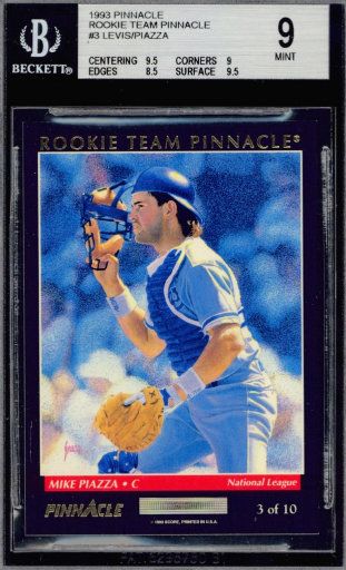 ![]() Pedro Martinez first Topps card - pop 1 of 18, none higher ![]() Mike Piazza 1993 Pinnacle Rookie Team Pinnacle - love the artwork, and very condition sensitive given the black border. Pop 1 of 16, none higher