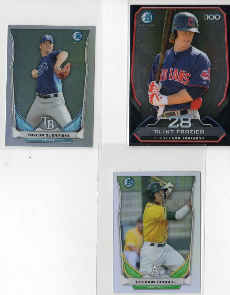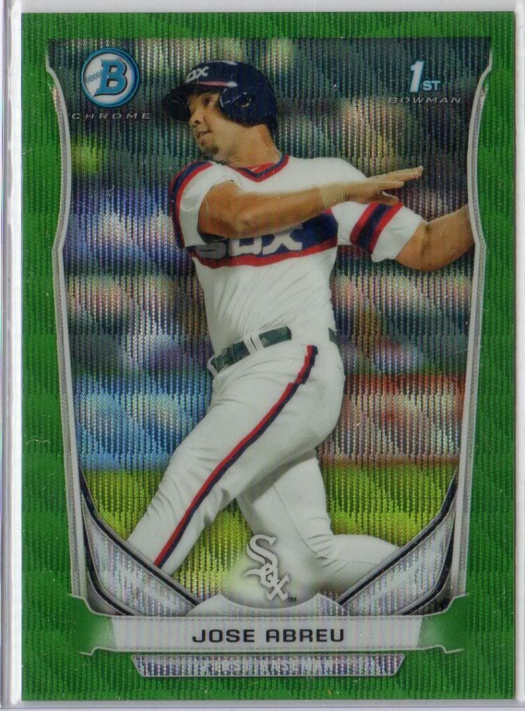 So we get in the car and I tell her she can open the rack pack and look for Abreu and Bryant. She opens up the purple pack first and says they look nice. When she opens the 4th pack she says "Dad these cars are Real Pretty cards". I ask here "What do you mean?" "Well 4 are Orange and 1 is green" ![]() "Weren't you looking for Abreu" Yes I was ![]() ![]() ![]() I am going to list it later on eBay and I told her whatever it sells for I am going to split it with her. I have not seen any Green wave Abreu's listed yet #22/25. The other inserts and refractors below. ![]() ![]() ![]() ![]()