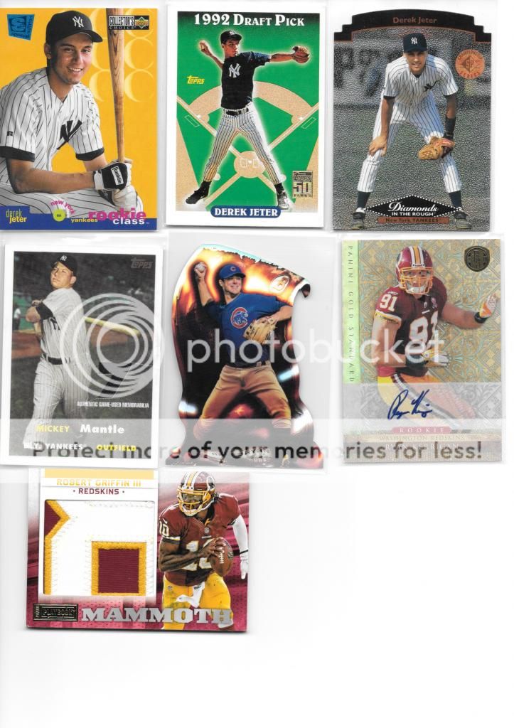 Looking for Derek Jeter!!! RE2PECT Penny sleeve ---> top loader ----> team bag ----> bubble mailer If you don't ship in a bubble mailer w/ TRACKING CONFIRMATION I do not want to buy/trade with you. |