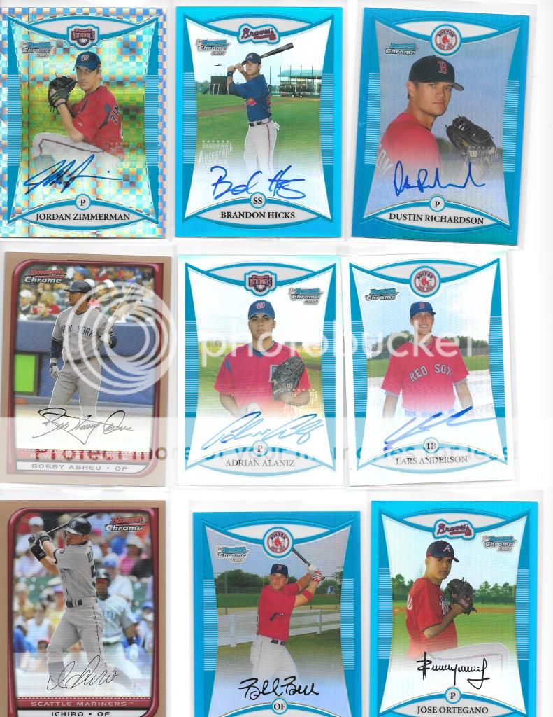 jordan zimmermann 2008 bowman chrome blue ref auto 031/150 tristar farm hands auto 2009 sweet spot auto /699 2009 sweet spot silver auto /65 2009 topps chrome ref auto /499 and blue ref auto /199 2009 topps career quest auto 2012 a&g auto 2012 a&g red ink auto /10 ryan zimmerman 2007 ud masterpieces stroke of genius auto 2007 elements clear cut (gold?) jersey auto /99 2008 co-signers dual alex smith/zimmerman auto others 2010 topps national chicle black umbrella /25 auto ian desmond 2010 topps national chicle black umbrella /25 auto denard span (twins uni) all those cards you have are great. any trade you want to propose with those i would definitely consider. if you'd like to pay cash/paypal, i could provide pricing. most interested in the wills auto, the berra relic and of course the kershaw, but any of those cards would work as long as its a fair deal. thanks for considering. |