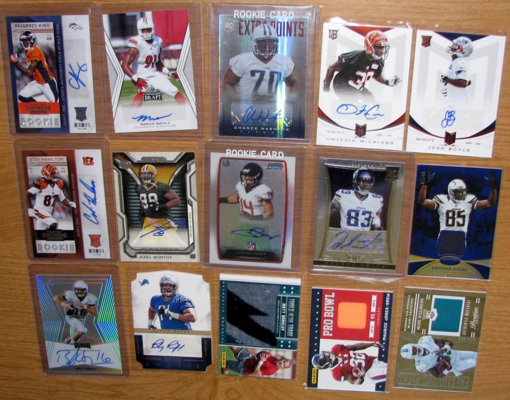 Update: $75 DLVD for this whole football lot. A sweet deal on 69 autographs/patch autos/patches/jerseys from products 2012-present. First reply to this post... Let's do this! (If payment is in by 5pm Central, I can get this shipped yet today.)