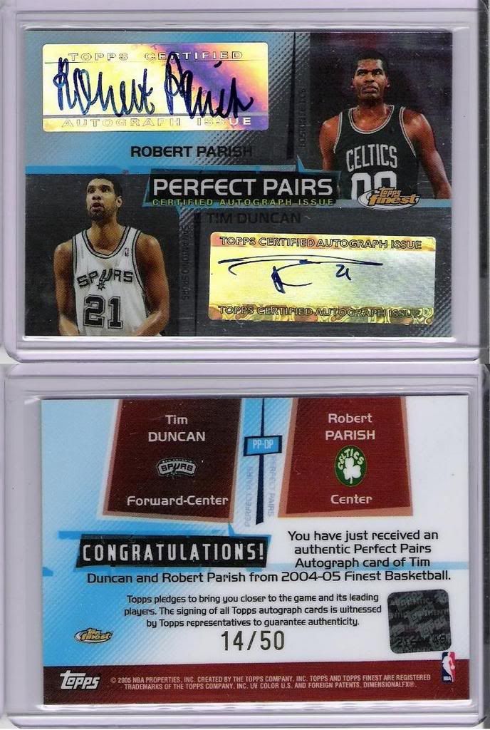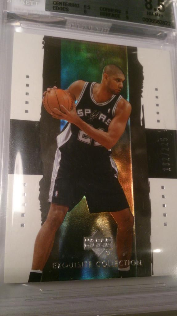 @msc942: Glad to hear someone collects Duncan in this board. And yes it is extremely tough to find a BGS 9.5 or a PSA 10 of his Ultra RC. The 1997-98 set is very condition sensitive as chipping is prevalent in all commons/base cards. I still lack a lot of his RC parallels, btw. And I really feel that I may not be able to afford them. The prices have skyrocketed over the past few years and Duncan winning his 5th ring would not help the prices subside even for just a little bit.