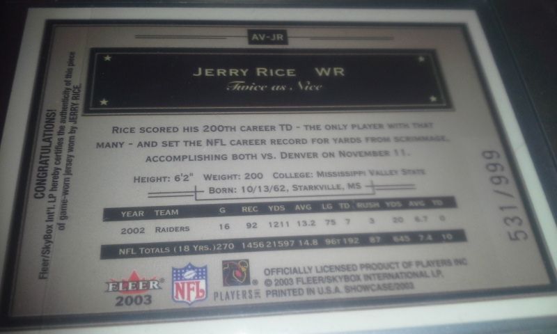 It might hold a premium to a McNabb or a Rice collector.