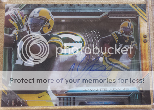 I have a Marquise Goodwin 1, the cards are so nice. Missed the Devonta redemption and wish I grabbed it, but was scared it wouldn't get made. The strats relic autos are definitely some of my favorite design wise. I will try to get a picture up off the Goodwin here before too long.