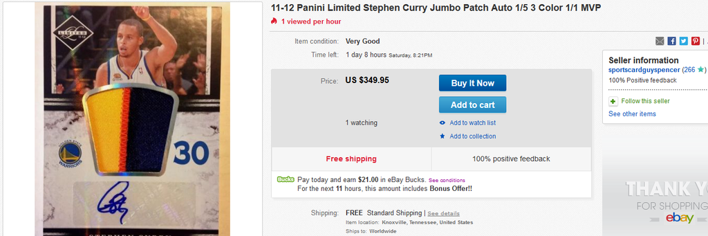Wait you didnt get the card? Isn't this your listing : 11 12 Panini Limited Stephen Curry Jumbo Patch Auto 1 5 3 Color 1 1 MVP | eBay