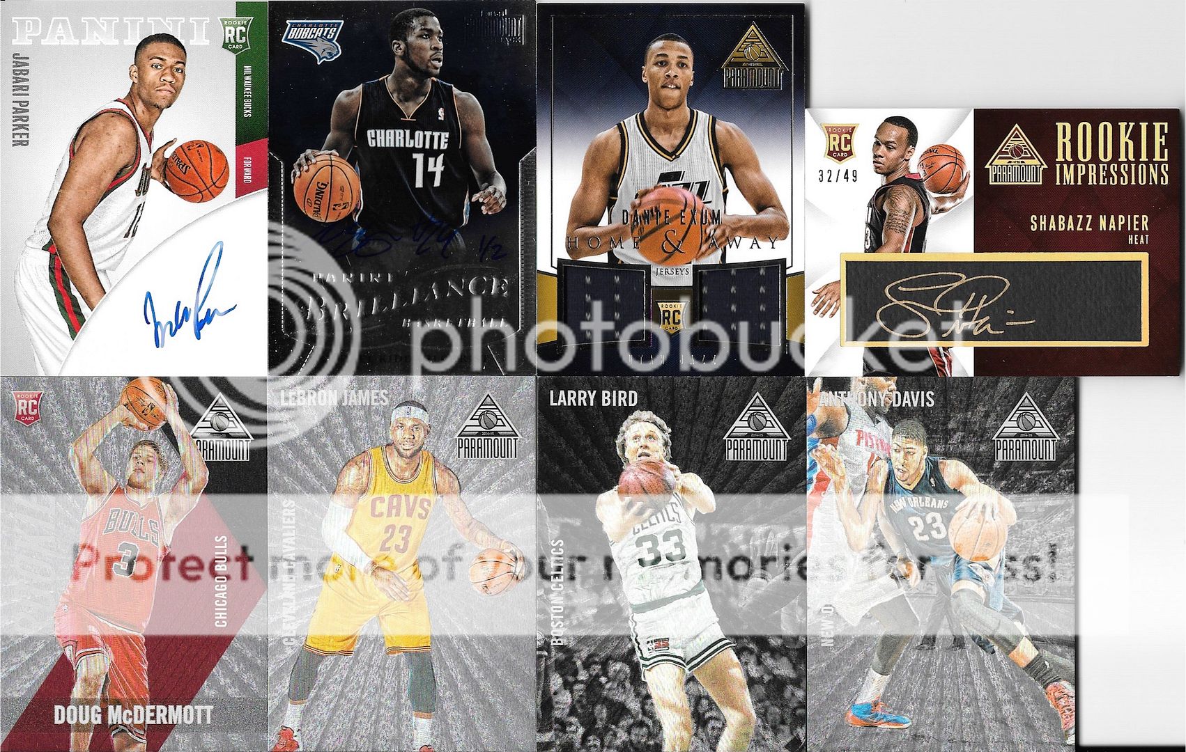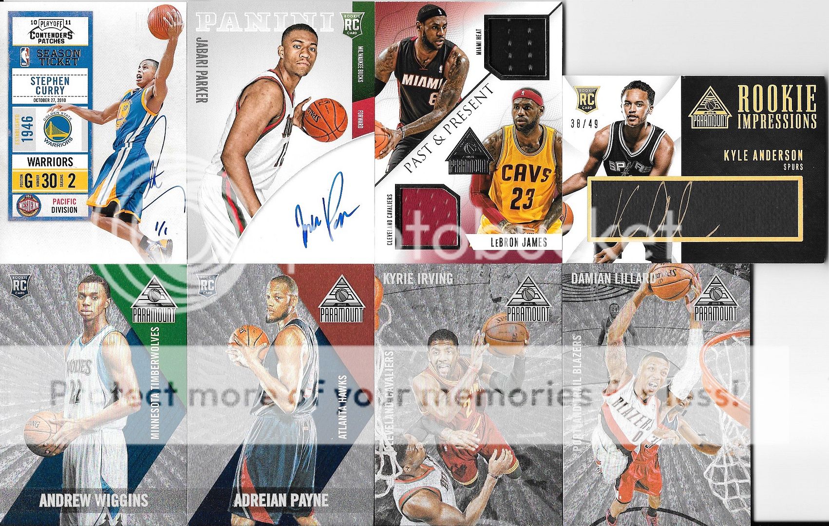 Court Kings box 1: Iverson also known as /49 LeBron 149/149 Wiggins RC /149 Marques Johnson patch /25 Durant gu /75 ![]() Court Kings box 2: 1st time getting a RC hot box, but there were no good rookies Stauskas is jersey numbered 10/49 ![]() 2 Goodwin boxes Game of Chance artist auto 1/25 Lemieux and Abdullah are Magician leathers /15 Cowens and Messier are /50 2 species cards numbered 122 & 185 ![]() Case 1 of Paramount Box 1 Curry buyback 1/1 Parker next day /110 LeBron /40 ![]() Box 2 Hill /49 Hood /100 Payne /25 ![]() Box 3 John Wall Buyback 1/1 Parker /99 ![]() Box 4 Curry /49 Love /25 ![]() Box 5 Gilmore /10 Stauskas /25 Iverson /50 ![]() Case 2 Box 1 Jefferson /25 Napier /50 ![]() Box 2 Parker /110 Kidd Gilcrest buyback 1/2 (it's weird, all 3 buybacks I got came with a Parker auto ![]() Box 3 Willis /25 Warren /25 ![]() Box 4 Exum redemption Vonleh /25 ![]() Box 5 Durant /25 McDermott /49 ![]() Redemption packs: Okafor /25 Curry /25 Butler /25 Harper /25 ![]() Dorial Green Beckham Pyramid /10 Tyler Lockett cracked ice /25 Also A Devonta Freeman auto 8x10 ![]() And the biggie: Mariota sketch auto 1/1 ![]()