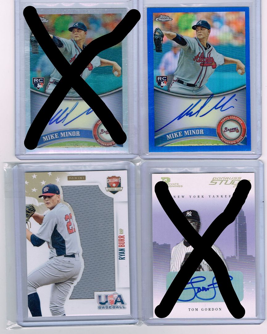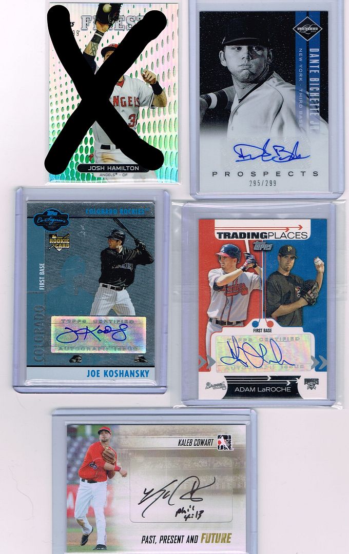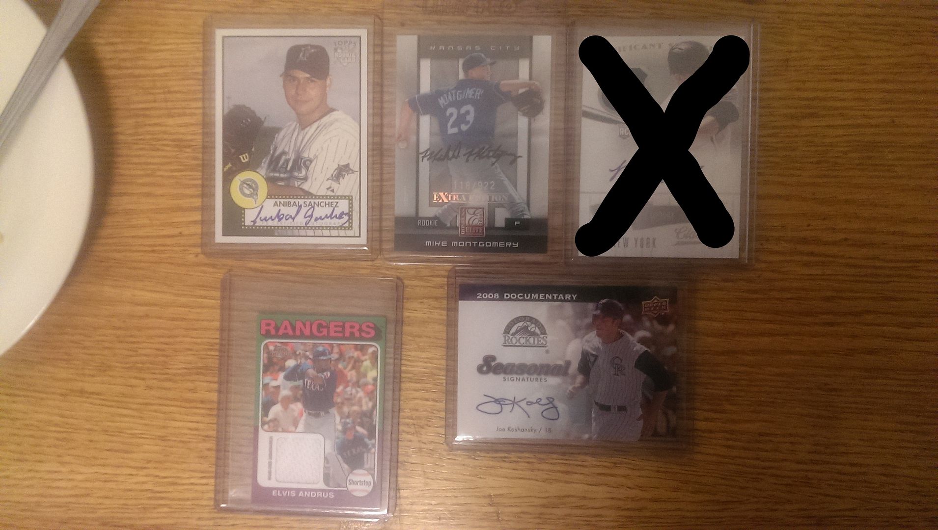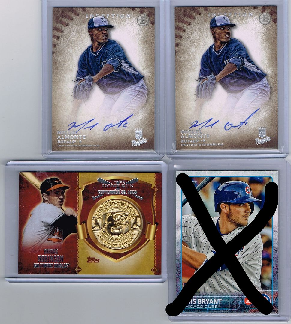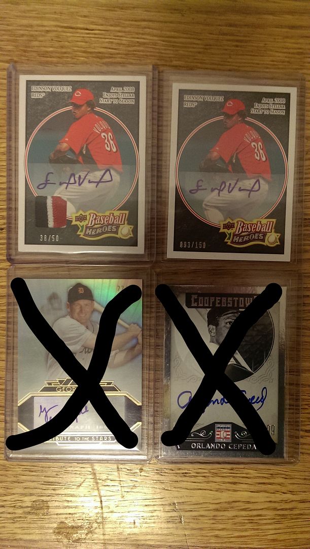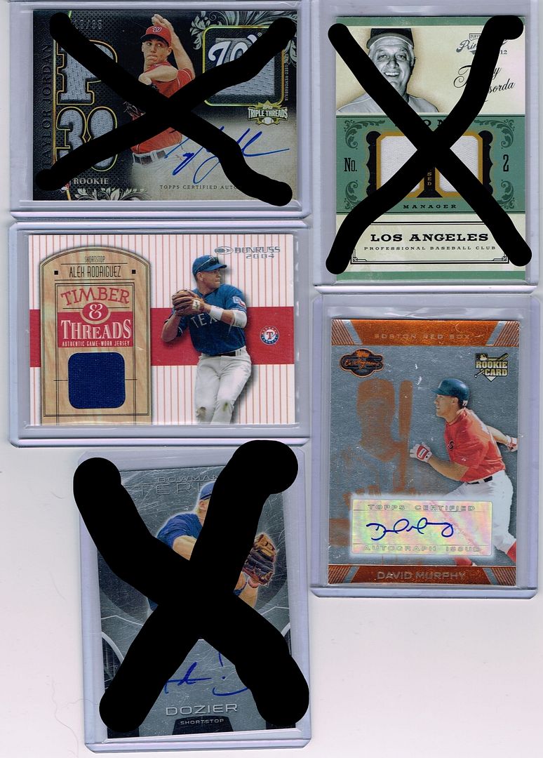 Looking for Carlos Gonzalez, Sam Fuld, Arenado, Helton, Joe Mauer, Seth Smith, Justin Morneau, Cuddyer, Joe Nathan, Brian Roberts, 2007 SPX Patches, and 2007 Turkey Red Chrome Refractors (/999). I'm not interested in base, inserts, or parallels at this time. If buying, $2.50 for shipping. Ian Kennedy Triple Patch 1/3 $30 Lance Berkman/Jeff Bagwell Dual Bat /250 $5 Troy Tulowitzki RC Auto $15 Carlos Gonzalez Gold Refractor /50 $4 Blue *************************GONE******************** ![]() Edinson Volquez Patch Auto /50 $17 Edinson Volquez Auto /150 $7 Kell *********************GONE************* Cepeda **********************GONE********** ![]() Anibal Sanchez RC AU $5 Mike Montgomery RC AU /922 $3.50 J.R. Murphy RC AU Relic /299 $2.50 Elvis Andrus Mini Relic $2.00 Joe Koshansky AU $2.00 ![]() Juan Uribe GU Bat /700 $3.00 Andres Galarraga GU Bat (surface damage) $1.50 Jesse Crain AU $2.50 Larry Walker GU Bat $3.00 ![]() Miguel Almonte AU x2 $3.00 Brooks Robinson Commemorative Medallion $4.00 ![]() Prince Fielder GU $3.00 Trevor Bauer GU $4.50 Matt Newman GU $2.00 Casey McGrew GU $2.00 Andrelton Simmons GU $2.00 Brennan Boesch GU $2.00 ![]() Addison Reed AU $3.00 Stryker Trahan Refractor AU $3.50 Roenis Elias AU $3.00 ![]() Wade Miley AU ************************GONE**************************************** Wade Miley GU /36 $3.50 Miguel Montero GU $2.50 Nomar Garciaparra GU (Slight damage to corners and edges) $6 ![]() Jake Barrett GU AU $2.50 Carlos Quentin RC AU $2.50 Chris Owings Refractor RC AU $3.00 Jeff Kent GU $2.00 Jose Bautista Commemorative Hat Logo $5.00 Morgan Ensberg GU $2.00 Erik Johnson AU ****************************GONE********************************* ![]() Mike Minor Blue Refractor AU /199 $8.00 Ryan Burr GU /49 $3.50 ![]() Taylor Jordan Triple GU RC AU /35 $8.00 Alex Roidriguez GU $5.00 David Murphy RC AU /150 $3.00 ![]() Dante Bichette Jr. AU /299 $5.00 Joe Koshansky AU /300 $2.00 Adam LaRoche AU $3.00 Kaleb Cowart AU $2.50 ![]() Jorge Polanco AU $3.00 Luke Jackson AU $3.00 ![]() Trevor Hoffman Silver /50 $1.50 Jose Vidro GU $2.50 Aaron Myette GU $1.50 ![]() Javy Lopez GU $2.50 Eric Surkamp GU $2.00 Preston Wilson GU $2.50 Dallas McPherson GU $2.00 ![]() Joe Koshansky AU /199 $2.00 Josh Johnson GU $2.50 Ben Fransisco AU $2.00 ![]() Evan Meek AU $2.00 Kevin Hart AU $2.00 Eric Chavez GU $2.50 Ross Ohlendorf AU $2.00 ![]() Carlos Contreras Green Refractor /75 $3.00 Zach Petrick AU $3.00 Trevor Cahill AU $2.00 Jamaine Cotton AU /499 $2.50 ![]() Carlos Pena AU $3.00 Mark Ellis AU $2.50 Chien-Ming Wang GU $3.50 Carlos Villanueva AU $2.50 Jim Thome GU $3.00 ![]() Rocco Baldelli GU $2.00 Rick Porcello GU $2.00 Rickie Weeks GU $2.00 Alex Gordon GU $3.00 Adam Dunn GU $3.00 Chin-Lung Hu GU $2.00 ![]() Ryan Chaffee AU $2.00 Cesar Jimenez AU $2.00 Nathan Haynes GU $1.50 Elpidio Guzman GU /700 $2.00 Chris Shelton AU $2.00