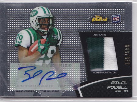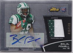 Bilal Powell graded 2011 national treasures RPA gold 10/49 PSA 9 2011 topps chrome rookie recognition auto PSA 8 2011 topps chrome finest freshman auto 2/5 & 3/5 both PSA 9 2011 topps chrome patch auto 8/25 PSA 10 2011 topps chrome black ref auto 13/25 PSA 10 2011 topps chrome atomic ref auto 2/50 PSA 10 auto/jersey 2011 triple threads triple jersey auto "NYJ" 7/50, 56/70, 94/99 2011 triple threads triple jersey auto "RC" 35/50, 79/99 2011 topps prime level VI quad jersey auto 73/199 2011 national treasures nfl gear triple (jersey, ball, jersey) auto 10/49 2011 topps platinum 2 clr patch auto 126/356 2011 absolute triple (patch, ball, jersey) auto 10/25 2011 topps precision 2clr patch auto 8/25 2011 five star 1 clr patch auto 83/175 2011 gold standard 1 clr patch auto 2/25 2011 gold standard RPA silver ink 462/499 auto 2011 timeless treasures auto 14/265 2011 topps chrome auto X2 2011 topps chrome ref auto 62/99 2011 topps chrome rookie recognition auto 2011 inception auto 687/900 2011 elite auto 320/399 2011 topps red zone auto "red ink" 12/100 jersey 2011 inception 2 clr patch 32/150 2011 inception jersey 7/10, 15/158, 52/158 2011 r&s revolution jersey 248/249 2011 sterling jersey X3 2011 r&s jumbo jersey 21/50 #'d & refractors 2011 topps chrome superlative diecut red /25 X2 superlative diecut blue /50 finest freshman atomic diecut /50 finest freshman gold /75 X2 red ref /25 sepia ref /99 blue ref /99 x2 orange ref x2 xfractor ref x2 2011 finest red ref /25 gold ref /50 blue ref /99 xfractor /399 ref x2 2011 topps prime green /99 x2 purple /399 x4 red /499 x3 blue /599 x2 gold /699 x2 std /930 x3 2011 contenders playoff ticket /99 2011 topps platinum xfractor x4 2011 topps platinum green /499 2011 topps gold /2011 2011 elite diecut /85 2011 prestige xtra points /250 2011 topps rising rookies /1339